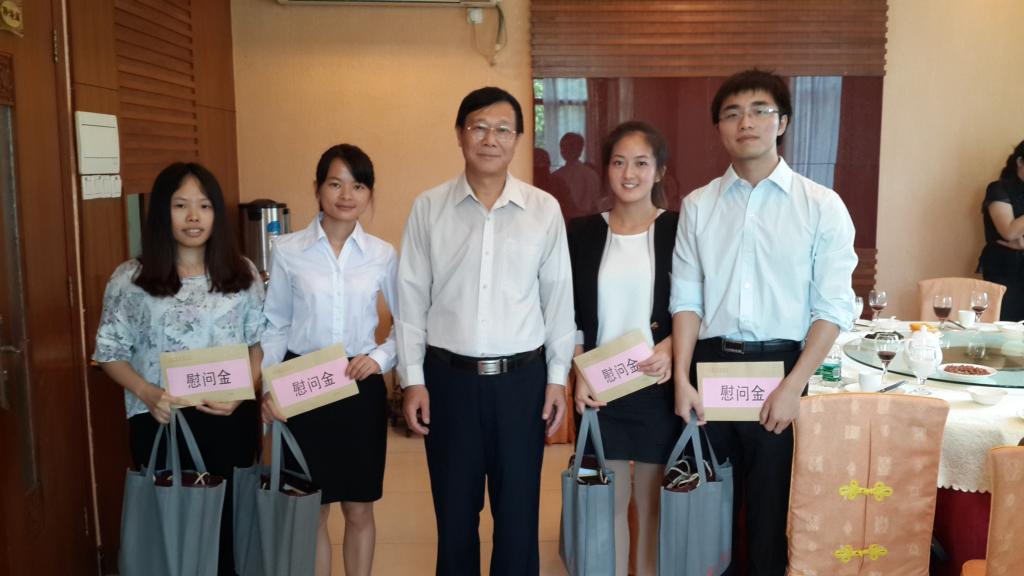 校党委副书记陈建平陈建平为志愿者颁发慰问金