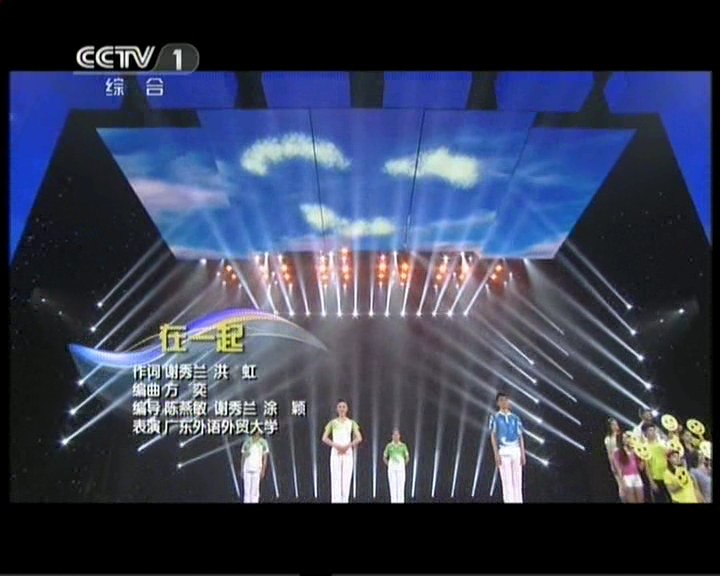 ,由广东外语外贸大学团委自主编排的说唱节目《在一起》荣登央视荧幕,作为“我们的中国梦·五月的鲜花”——2014年全国大学生主题文艺专题节目之一在中央电视台综合频道黄金时间播出。5月3日,央视新闻频道《朝闻天下》栏目播出了对广外节目及志愿服务基本情况的采访:《志愿者,城市最美的名片》。节目生动诠释了青年志愿者精神,体现了广东外语外贸大学国际化特色。