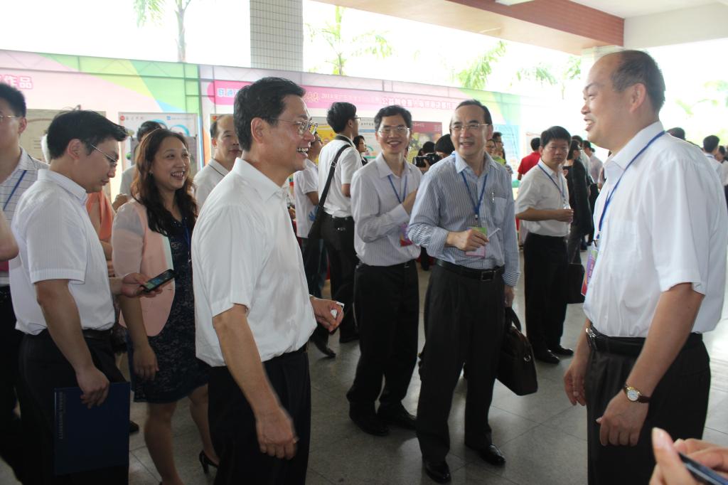 5月17日上午,2014年“挑战杯·创青春”广东大学生创业大赛终审决赛暨第八届广东大中专学生科技学术节开幕隆重举行,省委副书记马兴瑞、副省长陈云贤、中国科学院院士计亮年教授、省委副秘书长魏建飞、省政府副秘书长林积以及各主办单位领导、省内各高校分管领导和团委负责人、入围决赛和前来观摩的700余支团队和近两千名学生代表参加了活动。我校党委副书记卢景辉、校团委书记谢秀兰莅临现场,观摩指导。开幕式后,领导们参观了优秀作品展。