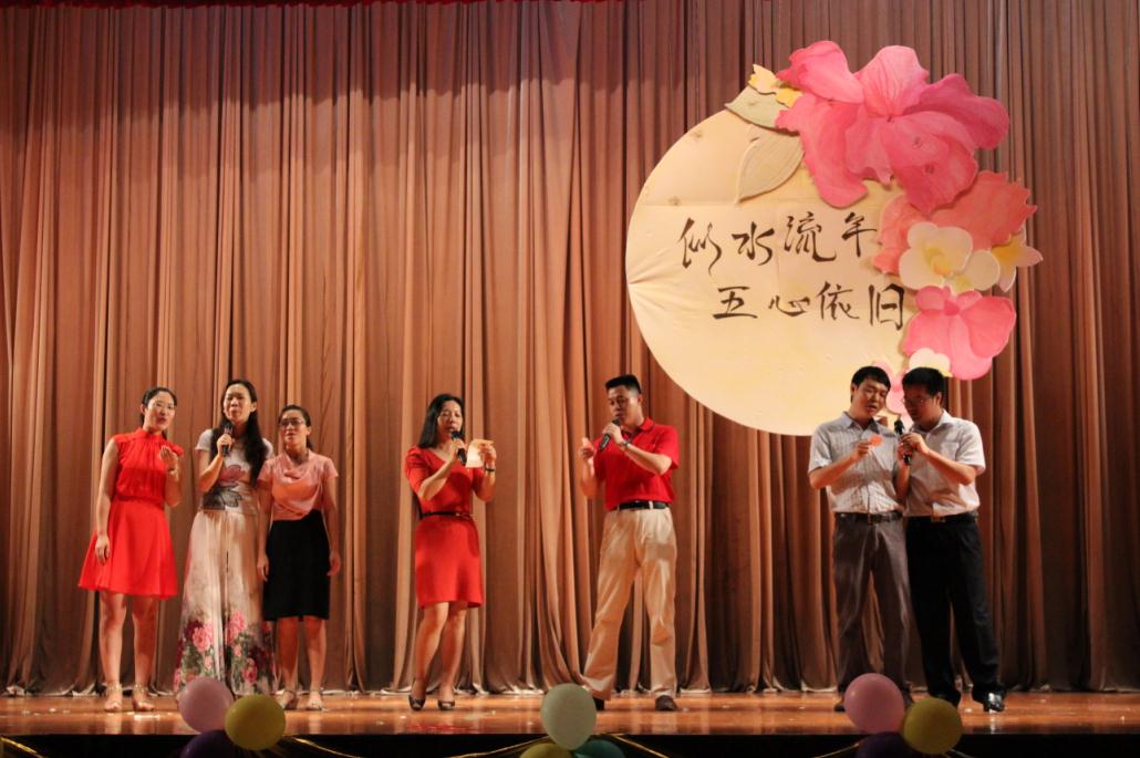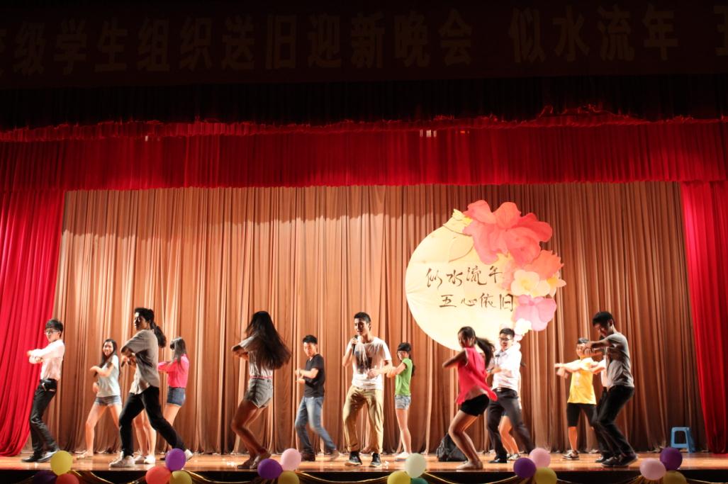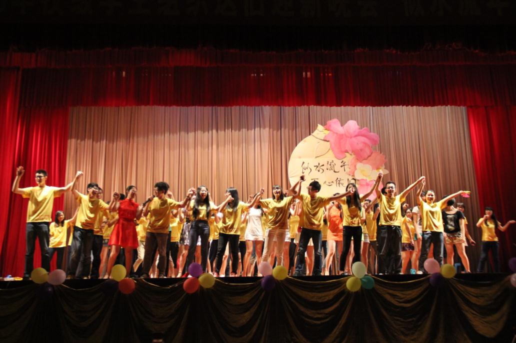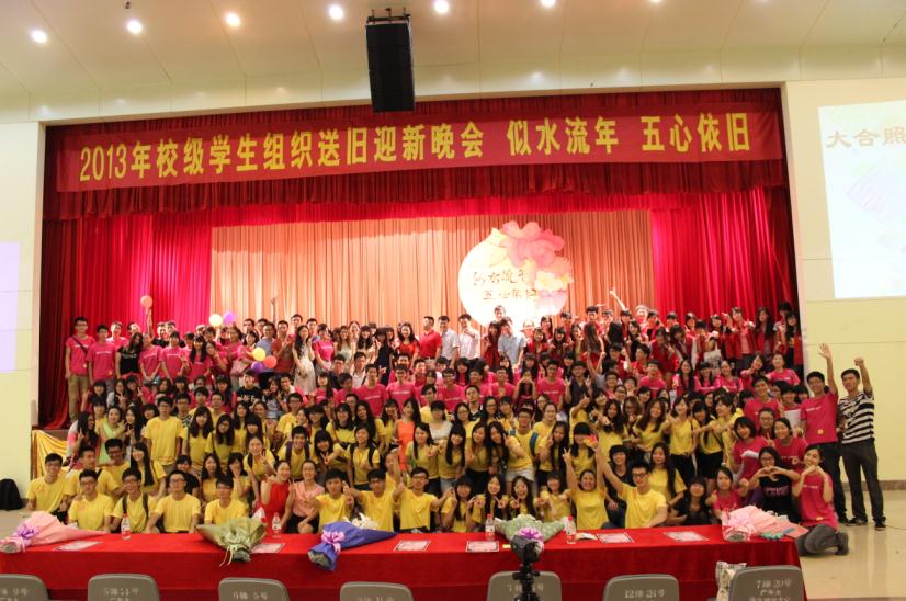 本网讯 6月6日晚,由校团委主办,校学生会、校团联和校艺术团体协办的“似水流年 五心依旧”2013年校级学生组织送旧迎新晚会在南校区学生活动中心精彩上演。校团委书记谢秀兰,副书记陈兵、刘勇,社会实践部部长余海波,专职团干部涂颖、曾恒,基地行政秘书谢燕贞和校级学生组织干部近300人出席晚会。