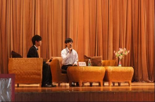 在韩秀映师姐的介绍过后,主持人请来了华南理工大学的柯泽雄师兄,作为华工社联主席,他希望干事从大一开始就意识到反思工作的重要性,考虑怎样取得更好的效果。同时他也强调部长的带头作用和部长管理部门要注意的地方。作为新上任的主席,他特别重视社联的内部建设,好的分工与学术活动与晚会活动的顺利举行息息相关。