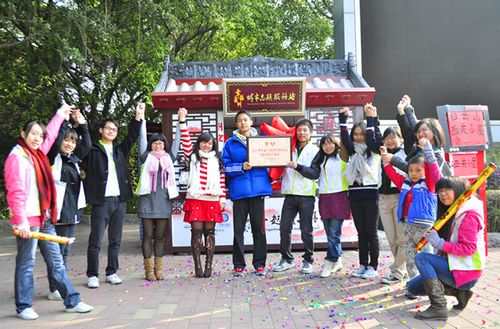 本网讯 近日,中文志协西关小屋服务站荣获“2011年幸福广州城市志愿服务站先进志愿服务集体”称号。12月24日,中文志愿者协会组织在白云山“幸福广州城市志愿服务站”(即西关小屋)迎来了隆重的揭牌仪式。中文志协的全体志愿者的踊跃参与和大力支持使活动获得圆满成功。