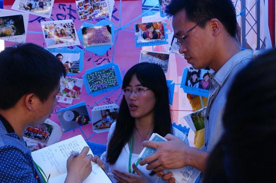 活动当天,蓝信封在现场设置了多种多样的活动,包括“我想把自己寄给你”,、“公益知识有奖问答”等,并邀请现场群众参与创作“指纹画”并进行公益拍卖活动,吸引了不少观众。与此同时,蓝信封队员向参加此次公益音乐会的众多参与者介绍了留守儿童现状及蓝信封项目的运作方式,在宣传公益理念之余也与现场的其他公益组织进行经验交流与分享,建立了合作联系的桥梁。30日下午,蓝信封秘书长姚杰作为受邀嘉宾,与包括安利公益基金会在内的其他三家公益组织负责人一同出席了关于农村留守儿童的公益沙龙,并在活动中发言,结合蓝信封实例,分享并探讨了公益资源的寻找与利用。同日下午,我校赖洁莲老师作为蓝信封在广外的指导老师之一,也莅临现场进行指导。为时两天的公益摆摊活动中,广外蓝信封队员表现出十足的活力,积极呼吁社会大众关注留守儿童,展现了大学生做公益的昂扬面貌,为公益事业献出了自己一份力量。