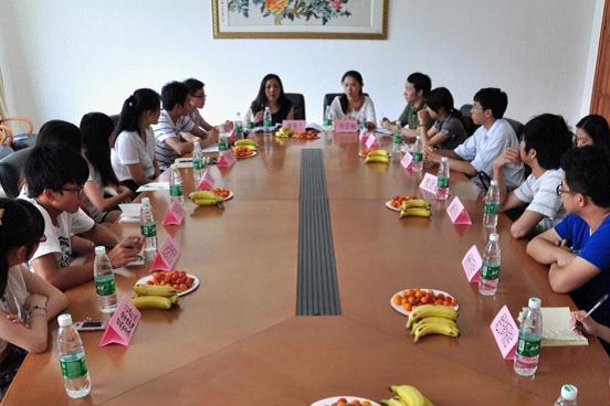 本网讯 5月10日下午,校团委在南校区校办公楼第二会议室举行春季“两进三同”学生组织座谈会。校团委书记谢秀兰参加会议,并和学生干部代表共同学习贯彻学校第三次党代会精神,围绕建设国际化特色鲜明的高水平大学的奋斗目标,和纪念建团90周年和“五·四”运动93周年的时代契机,研究和探索学生组织的发展方向与途径。校团委、校学生会、学生团体联合会和校艺术团体的学生组织主要学生干部,以及广外SIFE、广外蓝信封、广外创享社等校级学生自组织的学生团体负责人出席了本次座谈会。座谈会由学生团体联合会的指导老师刘茹楠主持。