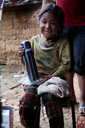 我们翻过一座座山派发文具袋,水壶,助学金,