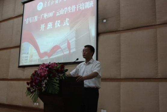 9月20日下午,广东外语外贸大学第二期“青马工程•广外100”云山学生骨干培训班开班仪式在南校区图书馆报告厅举行。 团省委学校部部长冯永忠、副部长林良盛,广外党委副书记卢景辉,党委宣传部部长胡文涛,思政学院院长宋善文、党委书记杨敏生,团委书记谢秀兰,学生工作部(处)副部(处)长黄晓梅,各学院党委副书记、团委书记和培训班118名学员出席开班仪式。