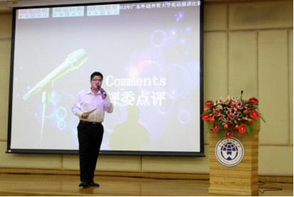 比赛的最后,来自英文学院的评委古煜奎老师对本次比赛进行了点评。他对这次比赛的选手们睿智的回答和机智的临场发挥表示了赞扬,并提出在演讲时要特别注意逻辑性,应该抓住重点问题简要地发言。其次,他还向在场同学推荐了有演讲之父的斯蒂芬·卢卡斯教授的系列作品,鼓励我们通过不断学习名家争取以后能有更好的表现。