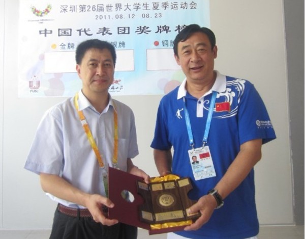 同时,隋广军、许国彬也表达了对教练员和领队的感谢,感谢他们对我校学生的培养和照顾,并向他们送上了我校的纪念品。