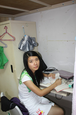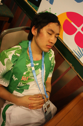 趁着午休的时间,好好睡一觉,养足了精神,才能更好地开展下午的志愿服务工作。——东语学院08级日语系严斌,小语种五洲宾馆志愿者团队