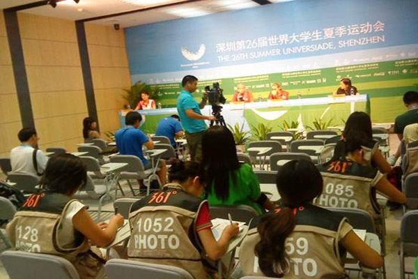 我校UNS记者参加赛后的新闻发布会并做记录