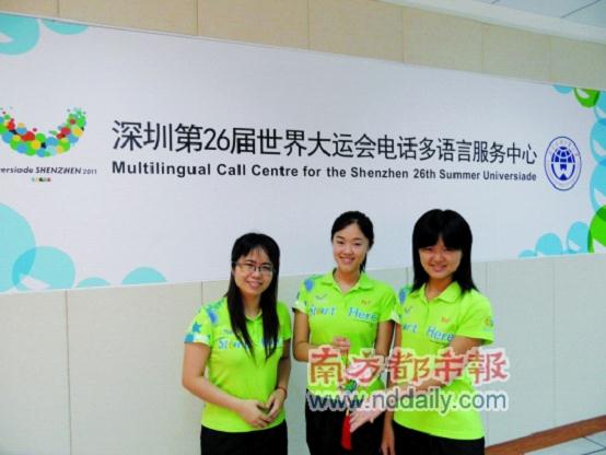 南都讯 半个多月,10个语种,接听近2000个求助电话。作为深圳大运会电话多语言服务中心的志愿者,来自广东外语外贸大学的一群普通学生组成了大运会语言翻译的“最后一道防线”。