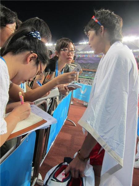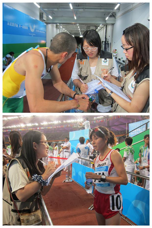 本网讯 深圳大运会UNS田径场馆团队由11名来自广外的即时引语记者、1名UNS记者以及两名体育信息外籍专家组成。大运期间,他们驻守在田径场上的最前线,为全世界的媒体采集最有效的即时引语。他们总是在办公室、混合区与看台之间来回奔跑,不断地提问题,做笔记;他们总是在键盘的敲击声中与时间赛跑,第一时间发布引语;他们总是在夜晚12点过后,踏着汗水挥洒过的跑道,与“水晶石”告别,细细品味她的美丽。十几天的大运之旅,他们互相学习,共同成长,见证体育精神永不放弃的魅力,也收获了团队的友谊。