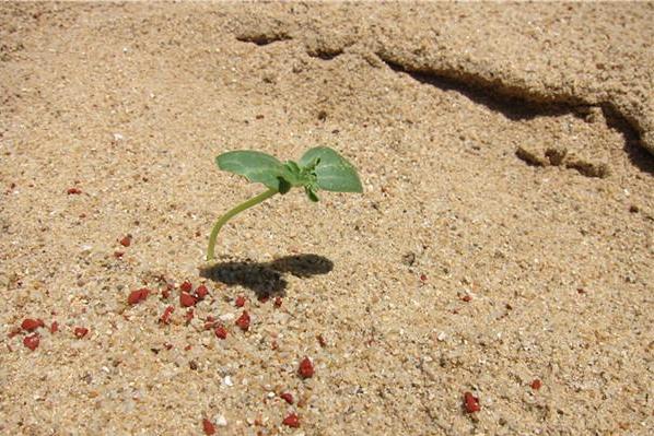 沙坑中破土而出的顽强生命同样诠释体育精神