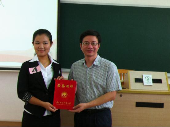 评分结束后,4号选手杜静以出色的表现获得了一等奖。刘志军、范丽平、刘海玲分别向一、二、三等奖获奖选手颁发了证书并合影,至此,广东省大中学生“乾图”杯法治演讲比赛广外选拔赛结束。