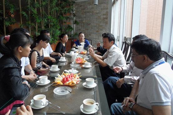 来访的领导嘉宾受邀来到了我校北校区云山小站举行茶话会。谈及印度的教学时,印度代表团领导则表示,大部分印度青年学生对中国的教育有较大兴趣。而我校的全英教学也让印度学生能适应并较快接受这样的教学方式,且我校为促进中印青年之间的交流,提出了交换生学费和住宿费全免、学分互换的政策。许国彬还强调,我校的教学质量高,注重锻炼学生的素质和能力,着力培养国际化、一专多能的学生。