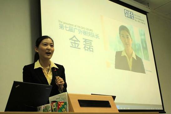 本网讯 10月20日晚,"Join SIFE, from zero to miracle"广东外语外贸大学赛扶(SIFE)团队第七届管理培训生(SMT)、传媒培训生(SCT)招新宣讲会在南校区热烈举行,校团委副书记国佳老师以及来自广东省各高校SIFE团队的代表出席了此次宣讲会,宣讲会吸引了近三百名学生前来参与,最终在队员们的激情分享和观众们的热情参与中顺利结束。