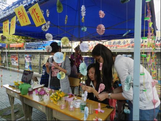 下午,各志协通过教学爱心、中国结、蝴蝶结、四叶草、幸运兔、手绳绳织等精美手工和“友爱富翁”、幸运盘等精彩的游戏吸引同学的目光。在与同学们的交流互动中,我们实践了“以奉献爱心感染人,以专业知识服务人”的宗旨,在拉近志协成员与同学的距离的同时,进一步加深同学们对志愿精神的理解。