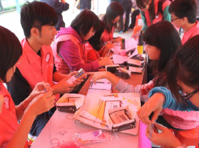 记者观察到,广外摊位前的同学越来越多,后来志愿者们还主动让出自己的座位给同学们,站着教同学们做手工。活动期间下起了小雨,志愿者们纷纷帮助就坐的同学移动位置,让站在摊位外面的同学进入棚内。虽然下着雨,摊位内人员也较多,但是气氛分外温馨。