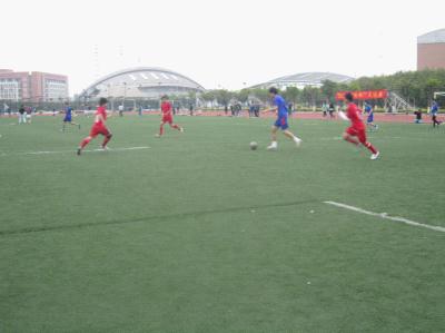 一声哨响,比赛正式拉开战幕。两场比赛、四支队伍身穿单薄球衣在寒风中开始了一番激战。其中,信息学院与经贸学院的战况尤其引人关注。身穿蓝色球衣的信息学院代表队是上届“广外杯”足球赛的冠军,实力不容置疑,而红色球衣的经贸学院代表队实力也不可小觑。因此这场比赛被观赛的观众戏称为“世纪大战”,吸引了不少同学到场观看。学校足球队的温教练和丘教练也亲临现场观看了比赛。