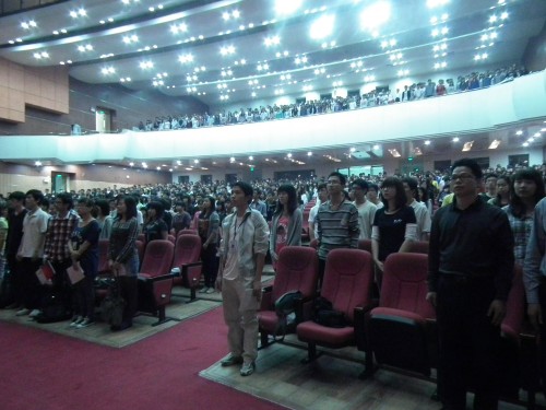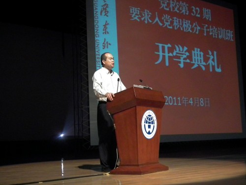 本网讯 2011年4月8日星期五晚上7点半,举行了中共广东外语外贸大学委员会党校第32期要求入党积极分子培训班开学典礼。党委常委、组织部部长、统战部部长卢景辉为1177名入党积极分子发表讲话。