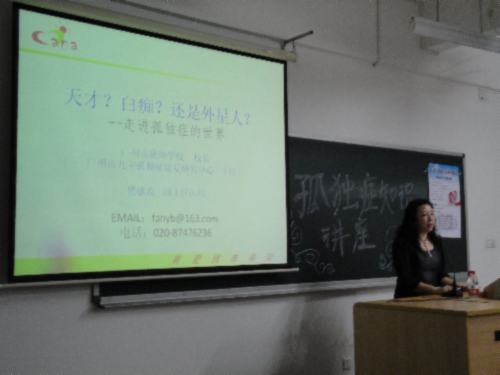 很多人都知道“孤独症”这个名词,但很少人对它有更为具体的了解。4月12日晚,广州康纳学校校长、广州儿童孤独症康复研究中心主任樊越波专家在我校顺利举办题目为“天才?白痴?还是外星人?——走进孤独症的世界”的专题讲座。