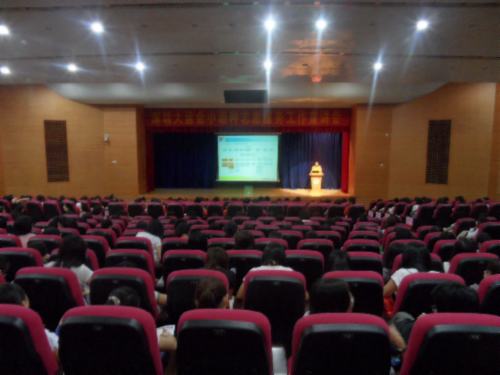 14:00,宣讲会在六教报告厅隆重召开,活动由谢秀兰主持。“我可能是这个报告厅里面第一个穿着运动T恤、七分短裤和运动鞋做宣讲报告的嘉宾!”身着深圳大运会U站(志愿者服务站)服装登台宣讲的吴华根,用生动活泼的语言开篇,继而用详实的数据和丰富的例子,对志愿者的工作保障、培训项目、岗位分配以及注意事项等内容作了深入简出的陈述。吴华根言简意赅的宣讲,拨开了同学们心中深圳大运会的朦胧面纱,对深圳大运会及其小语种志愿者志愿服务工作有了进一步的认识。