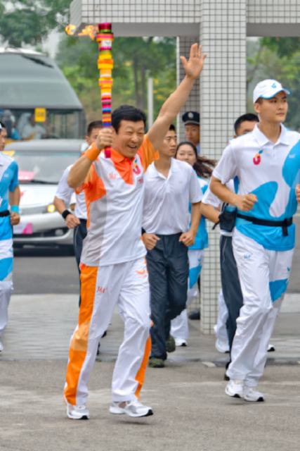 圣火从中山大学牌坊前开始,沿外环东路进入我校正门。途经艺术楼,校办公楼时,我校数千名师生一齐为火炬传递呐喊助威,气氛热烈。