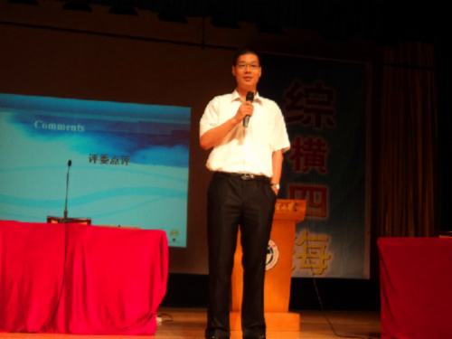 随后评委老师邢杰对该次大赛做出了点评,他谈到比赛中选手表现都很出色,选手在赛前要有足够的准备,比赛实际上就是对自己准备的过程的一种展示,要考虑到各种各样可能会出现的情况,灵活应变。