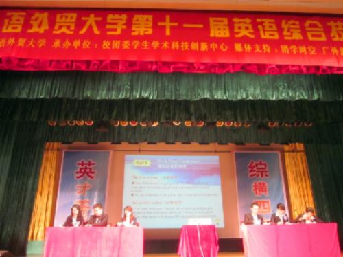 简单的开场视频和选手风采展示之后,就是考察参赛选手英语即时翻译能力的模拟记者招待会了。参赛的六支队伍分别担任发言方和翻译方,就六个专题进行模拟记者招待会。其专题包括广州亚运亚残的成功举办、打击违法添加食品添加剂的整治工程、录用外来务工人员为公务员、汶川特大地震的恢复重建、知识产权保护、全国人口普查。选手们英语之流利,思维之灵敏足见其功底之深。