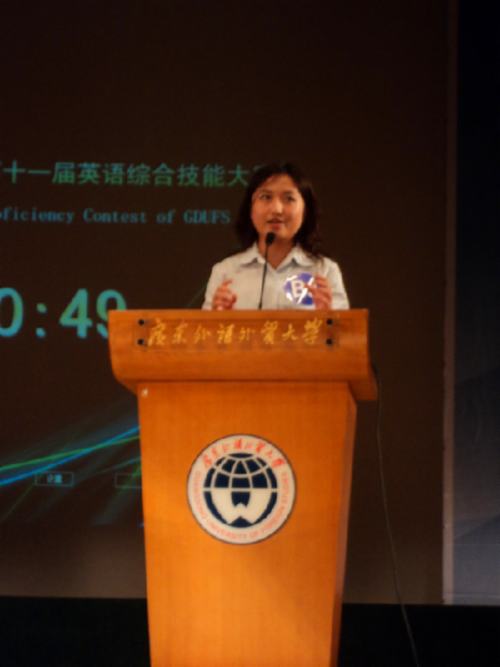 (图片:曾卓琪 文字、编辑:吴怡婷)5月27日晚7点,第十一届英语综合技能大赛决赛在北校区第六教学楼学术报告厅拉开了帷幕,六支队伍勇闯海选院选,在复赛中过关斩将,最终在英综决赛舞台上大放异彩。出席大赛的嘉宾有校党委副书记许国彬、校团委书记谢秀兰、校团委副书记国佳。邢杰、陆璐、杨文慧等担任大赛的评委。整场大赛分为模拟记者招待会和议会制辩论两个环节。