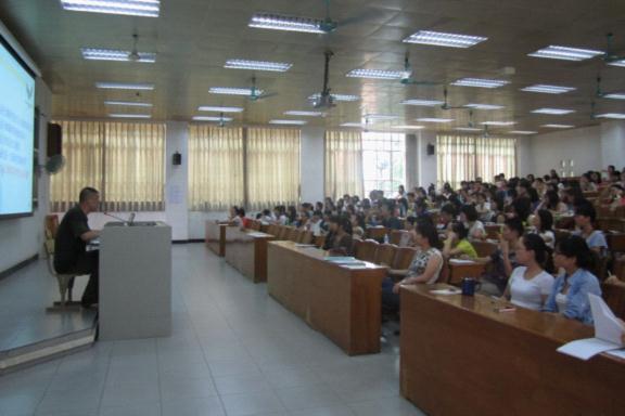 培训大会分上午和下午两场。上午的培训是由徐济成主讲“媒体运行”。他首先简单介绍了媒体服务、媒体运行和新闻宣传的不同及重要性、志愿者行为方式等,随后幽默地与志愿者分享自己在多年工作中总结的“5T法则”(5T:Target,Talk,Teamwork,Tough,Together)等宝贵经验,还特别强调“写新闻和消息要做到简洁(Clean)、明了(Clear)”。他指出,我们的工作核心就是“服务”,为媒体提供新闻和信息,在服务中提高综合能力。志愿者们认真听讲,及时做笔记,反应热烈。