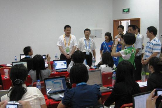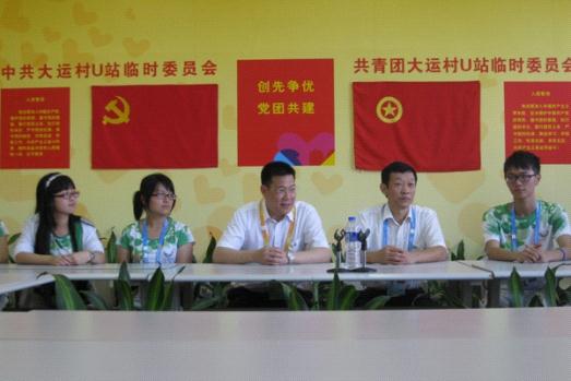 随后,大家来到大运村志愿者之家--U站,亲切慰问正在服务的我校小语种志愿者。仲伟合在慰问中指出:近年来,我校学生连续参与了包括奥运会、亚运会、亚残运会、上海世博会和深圳大运会在内的许多大型涉外活动的志愿服务工作。作为一所以国际化为办学特色的学校,同学们在志愿服务工作中以专业、专注的表现征服了参加活动的国内外来宾,同时也形成了独具特色的广外志愿精神。仲伟合希望同学们能够继续秉承“坚韧、包容、进取、专业、团结、奉献”的广外志愿精神积极服务大运会,做到服务他人,锻炼自己,收获友谊。仲伟合特别嘱咐同学们,天气炎热,大家工作量大,一定要照顾好自己,注意休息。
