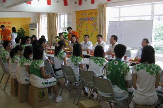 在志愿者之家,仲伟合、许国彬还与临时党团支部的同学们一起围绕党支部建设工作进行座谈。仲伟合勉励党员同学充分发扬榜样作用,团员同学通过这次锻炼机会积极向党组织靠拢,大家共同担当起社会责任,将志愿者的奉献转化为强烈社会责任感,将志愿者的热情转化为坚定的意志品格,将志愿者的参与转化为专业化服务技能。