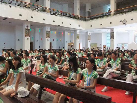 志愿者们在天主教深圳圣安多尼教堂听工作人员讲解