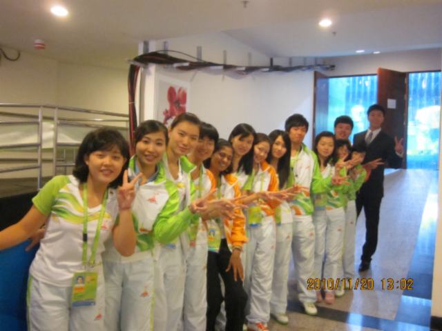 作为能够在赛后与运动员直接接触的即时引语志愿者,她们每天穿梭于混合区、文字记者席和AGNS(亚运新闻服务)办公室之间,看遍从淘汰赛到决赛、从团体赛到单项的每一场比赛,充分领略各大高手的球技,看尽场上的帅哥美女,然后在混合区近距离采访运动员,再跑回办公室写稿。