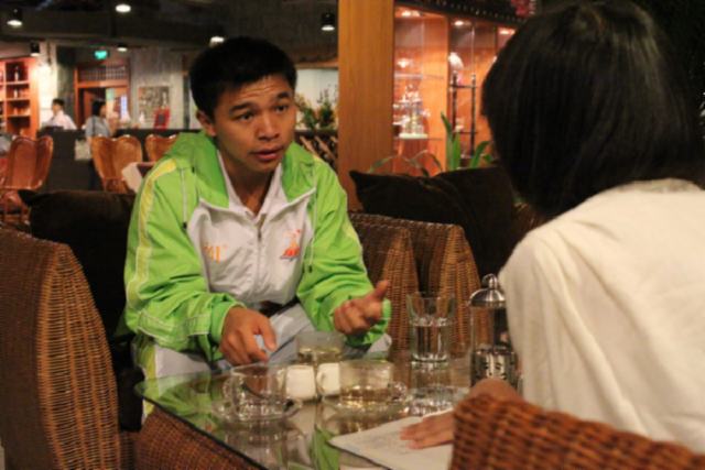 11月25日晚11点,叶永开同学在接受记者采访的时候,刚刚从场馆回到学校。由于第二天没有排到他的班,他的亚运志愿者工作其实已经全部结束了。叶同学一直说不是很累,工作的时候蛮轻松,但他也坦言,真正累的时候还是在培训。