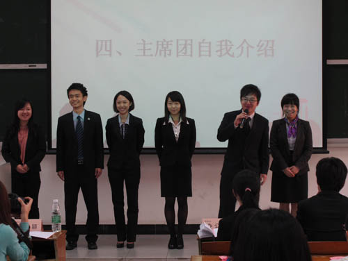接着主席黄晓晓、副秘书长陈霖依、副主席陈醒、李一夫、何国颖、林苑依次进行了自我介绍,各位主席团成员都衷心希望大家在校会努力工作,并有所收获。主席黄晓晓代表主席团做了主题发言,她表示,每位学生干部需要不断积淀学识、能力,在校会这个平台上不只是学会做事的技能,更要有一种认真工作的态度。
