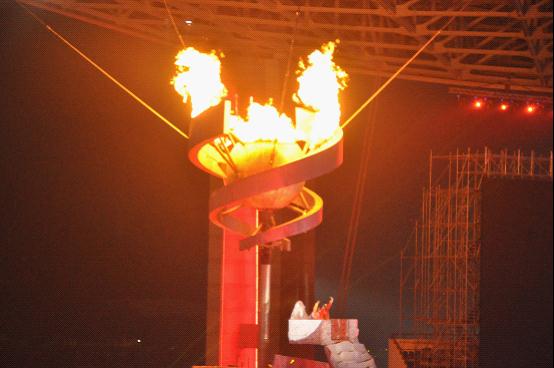 火炬最后一棒由肢残男女运动员攀爬岩石抵达峰顶点燃火炬。他们只拥有一只腿,攀岩并不是一件容易的事。在所有观众的加油声中,他们成功爬上峰顶,点燃了亚残圣火。