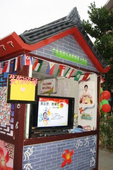 这个显眼的液晶大屏幕不断地滚动播放亚残运会期间的赛事赛程的预告、即日奖牌榜和志愿者动人的风采等。路过驿站的行人看到这台电视机都感到很惊讶,驻足观看说道:“液晶显示屏很醒目,以后看内容就比以前方便多了"。一位亚残志愿者路过时感慨道:“远远看到那么大的屏幕,就感觉驿站好温暖,广外太给力了!”服务站的志愿者们热心地向路人介绍这位“新成员”,脸上洋溢着喜悦之情。