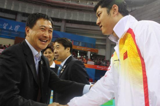 隋广军和中国坐式女排主教练张俊亲切握手