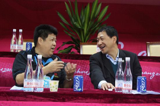 隋广军与蓝森松(左)交谈甚欢