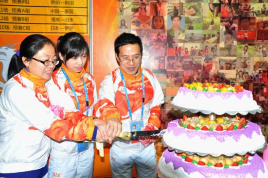 随后,仲伟合和邓蕾一起宣布了三位寿星的名字,并与大家观赏了为寿星们准备的视频,一起为他们送上了生日祝福。视频结束后,林少娜向寿星们表达了祝福:“今天是大家开心的日子。我们共同工作、共同陪伴、共同快乐。亚运已经过去,希望亚残运会接下来的工作也能继续顺利进行。祝你们生日快乐!”随即,陈子锐、蔡毅及林少娜三人一起向三位寿星送上礼物。