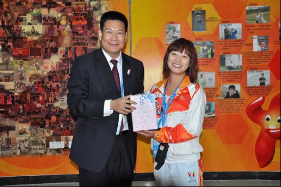 仲伟合代表场馆向邓蕾赠送礼品 |