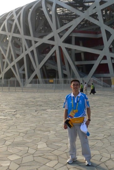 杨晟在鸟巢前