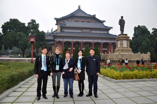 从左到右潘文迪、国际残奥会执委(GB)Jarvis的夫人lisa、克雷文夫妇、陆少玲,来自暨南大学,语言学研究生、中山纪念堂馆长