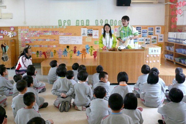 梁山、彭淑瑜在升旗仪式后受邀来到大三班的小朋友中间,为他们讲授亚运相关知识。首先,两位志愿者就身着的两套志愿者服装(亚残赛会志愿者服装和城市志愿者服装)进行分类讲解,让孩子们举手找出异同。志愿者代表认真地讲解,并不时提出一些问题。小朋友们争先举手回答,有时候一些颇有创意的回答惹得全场笑声不断,场面非常生动活泼。接着,梁山、彭淑瑜就亚运、亚残运期间我校志愿者的一些相关照片,深入浅出地介绍了志愿服务的一些经历。期间,表现出色的小朋友们得到了我校志愿者送出的微笑徽章,小朋友们如获至宝。