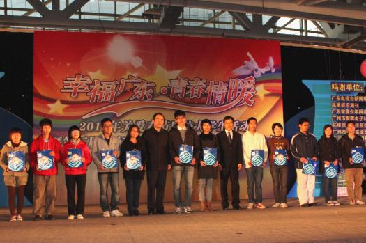 本网讯 1月17日下午,“幸福广东·青春情暖”2011年关爱春节留校大学生活动暨第五届广东大学生校园文化艺术节闭幕式在大学城广东科学中心举行。团省委书记陈东、团省委副书记曾颖如、中国移动广东公司总经理助理凌浩、中国移动广东公司广州分公司副总经理陈永快、通用磨坊(中国)南区销售总监陈洪福等出席活动,我校团委书记谢秀兰、团委老师谢燕贞、第五届广东大学生校园文化艺术节之“新声代”主持人大赛一等奖得主钟政轩以及40名学生代表应邀参加了活动。