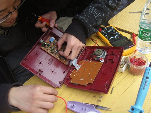 义修队伍利用丰富的理论知识,专业而熟练地检查、修理故障的电器。尽管义修队伍成员多为男生,但他们在检查精密电路时小心翼翼精细利落的修理手法让围观的同学大为惊叹,这也成为 “关爱女生”之义修活动的一道亮丽的风景线。
