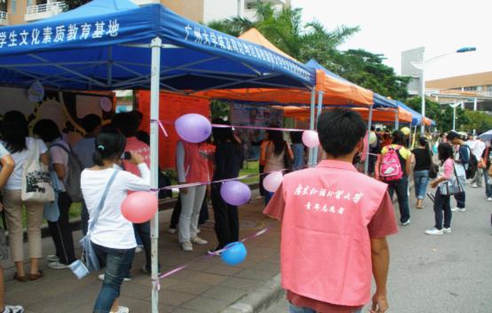2010年10月25日由我校团委青年志愿者行动指导中心(简称“中心”)组织,并由大学城校区9个学院的志协分会或实践部联合协办的首届“志愿时空——和而不同的世界”的活动在我校大学城校区生活区主校道上成功举行。