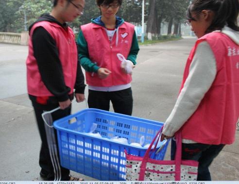 志愿者服务站的同学在派发早餐